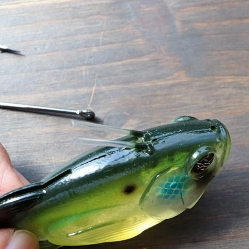バスがヒットすればルアーがライン上を滑り上がる為、魚がルアーをてこにしてフックを外すのを防止。