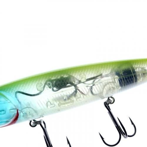 水につけると、小魚が発する音をイミテートした、魅惑のサウンドがルアーから発生。