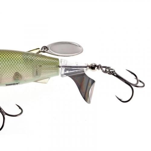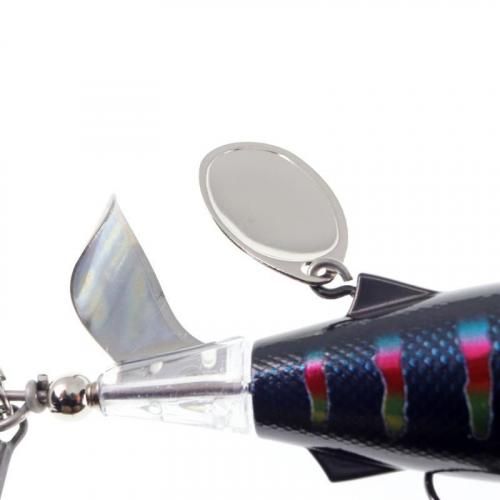 金属製のテール プロップとメタル ブレードが、リトリーブ時に衝突することにより独特のサウンドが発生。