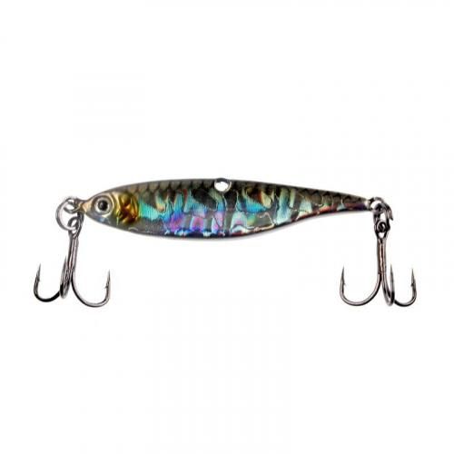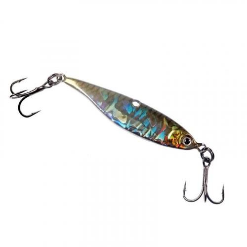 左右にトレブル フック、ボディ センター部にライン アイがあるユニークなジギング スプーン。